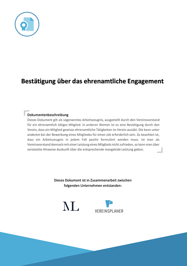 Viele Mitglieder brauchen als Nachweis ihres Werdegangs eine Bestätigung der ehrenamtlichen Tätigkeit – hier eine Vorlage.