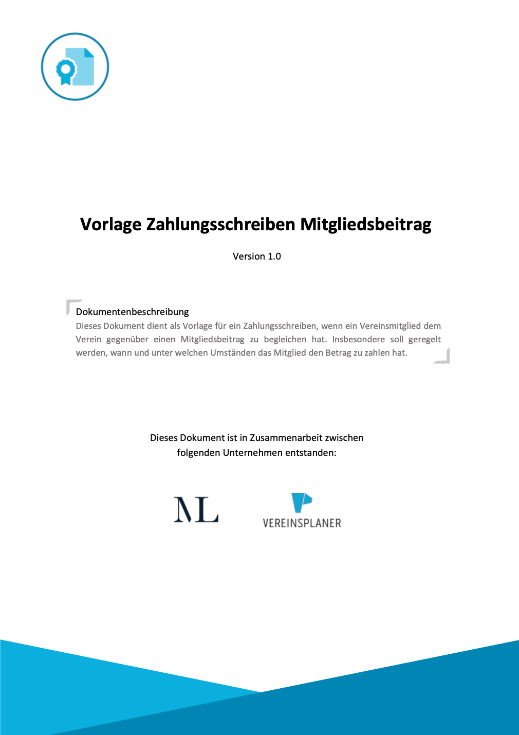 Dieses Dokument dient als Vorlage für ein Zahlungsschreiben, wenn ein Vereinsmitglied dem Verein gegenüber einen Mitgliedsbeitrag zu begleichen hat.