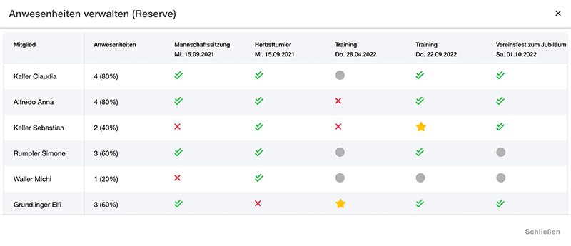 Welche Mitglieder sind am aktivsten? Wer war beim Training dabei? Schnell und einfach auswerten