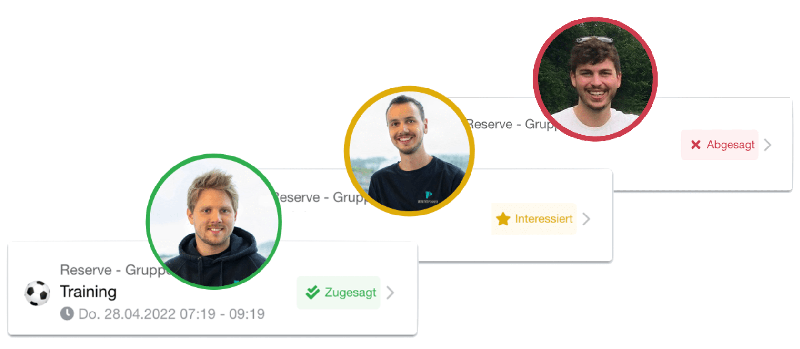 Trainings dank der Zu-/Absagefunktion durch die Sportler, besser planbar machen. Erinnerungen & Änderungen mit einem Klick aussenden.
